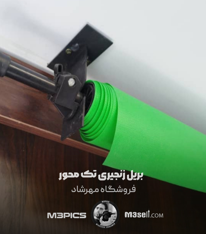 پرده سبز کروماکی حاوی باکس استند دیواری و سقفی حاوی زنجیر جهت جمع و نصب کردن آسان