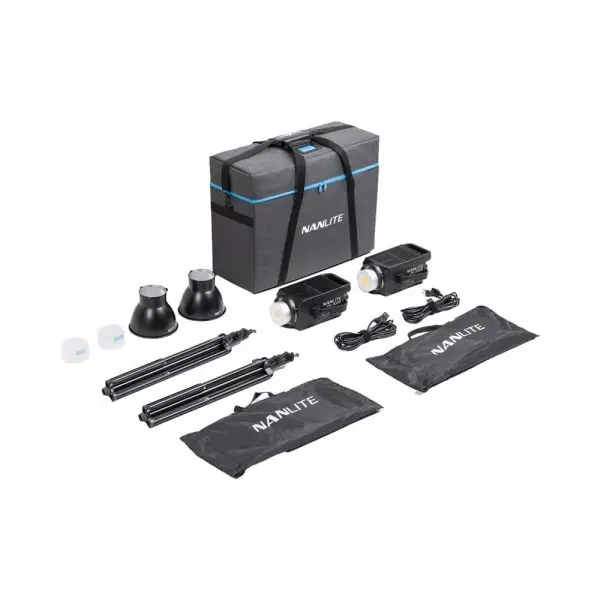Nanlite FS-300B 2KIT یک راه حل ایده آل برای عکاسان، فیلمبرداران و تولیدکنندگان محتوایی است که به دنبال یک کیت نورپردازی قدرتمند، انعطاف پذیر و قابل حمل هستند. این کیت شامل دو عدد چراغ Nanlite FS-300B به همراه دو عدد سه پایه نور نانلایت مدل LS-186 و یک کیف حمل دو تایی نانلایت Nanlite CC-S-FS-2KIT می باشد که نورپردازی حرفه ای را در استودیو و یا هنگام فیلمبرداری در محل، برای شما به ارمغان می آورد.