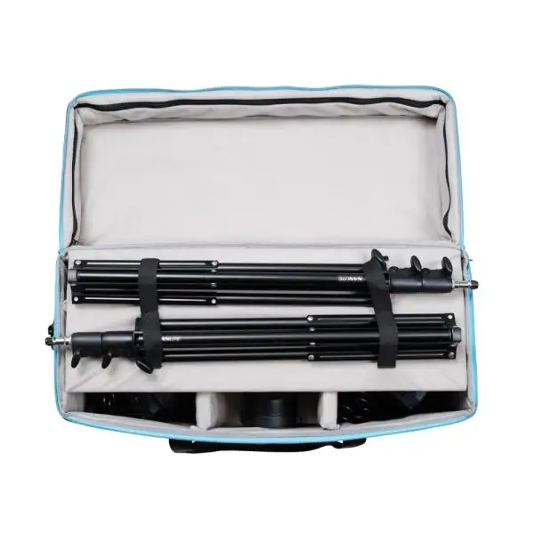 کیف حمل : هر دو چراغ و لوازم جانبی آنها از جمله سافت باکس ها (به صورت بسته) ، سه پایه ها ، کاسه های رفلکتور و کابل های برق را میتوانید داخل کیف همراه محصول قرار دهید